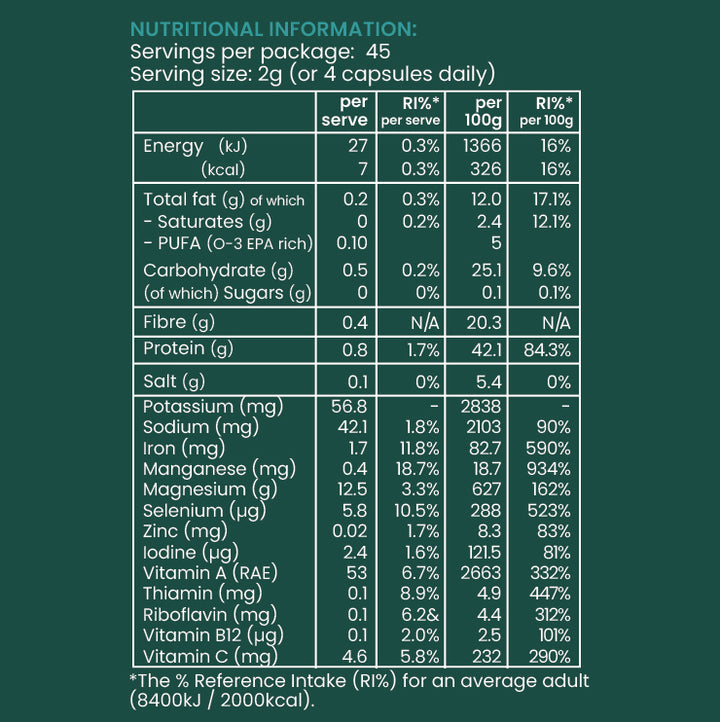 Locally harvested seaweed from pristine Australian waters.